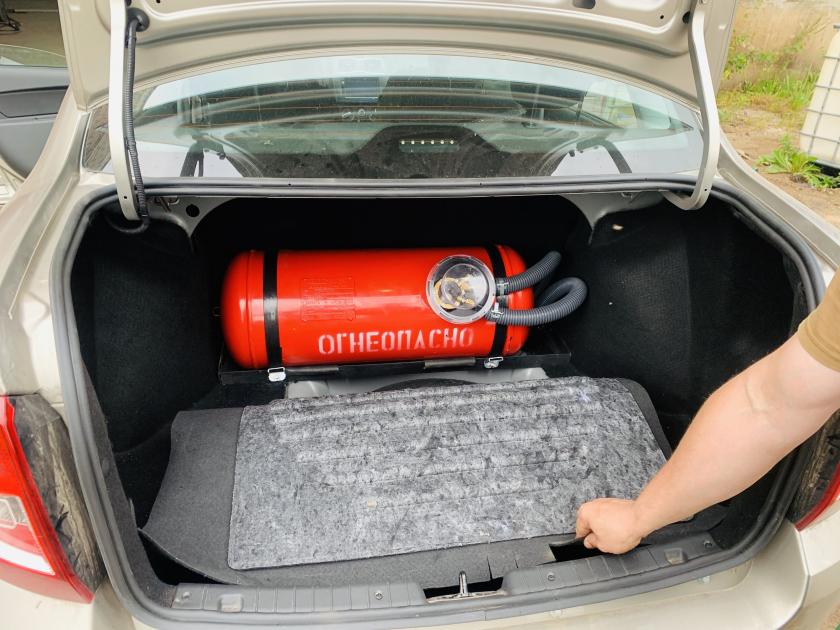 Авто: Lada Granta Оборудование: LOVATO Описание: В багажном отсеке установлен цилиндрический баллон объемом 50л.