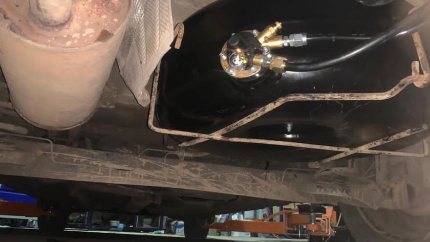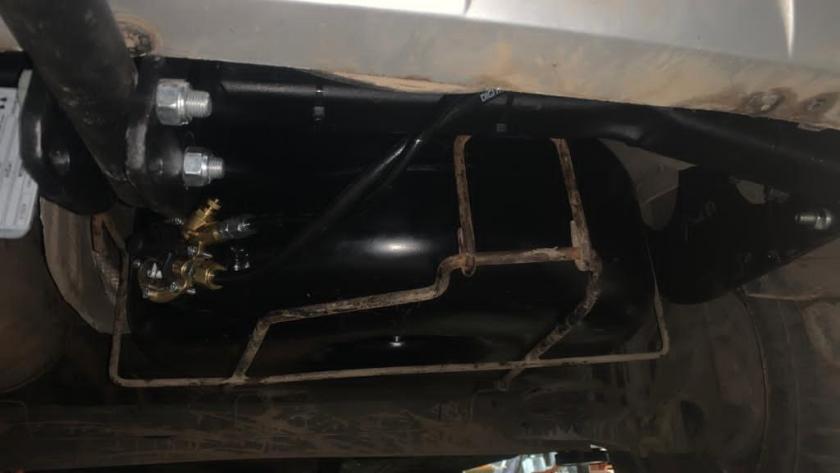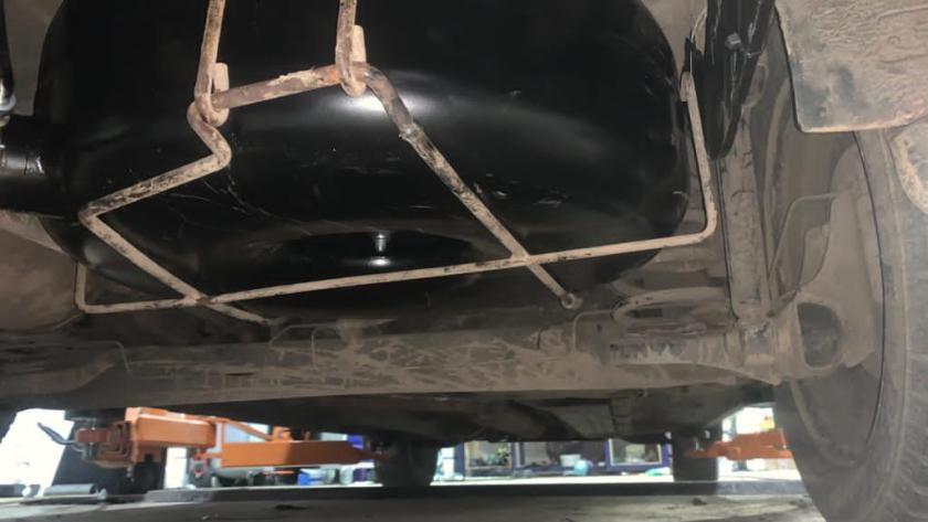 Баллон тороидальный, 54л., установлен на место запасного колеса под кузовом, запасное колесо демонтировано (ТС оснащено набором для ремонта шин).