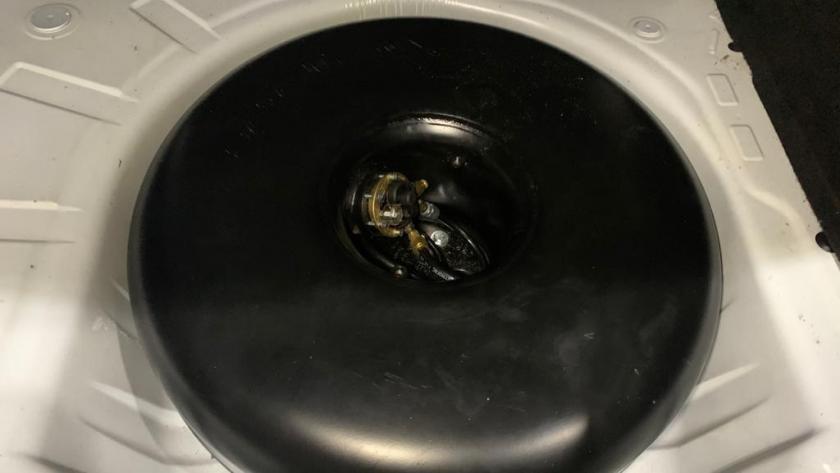Газовый баллон (пропан) тороидальный, объем 54л, вес 27±2кг, установлен в багажном отсеке ТС на место запасного колеса, запасное колесо демонтировано и отсутствует в ТС, в таком случае ТС оснащается набором для ремонта шин. На баллон установлен мультиклапан Tomasetto.