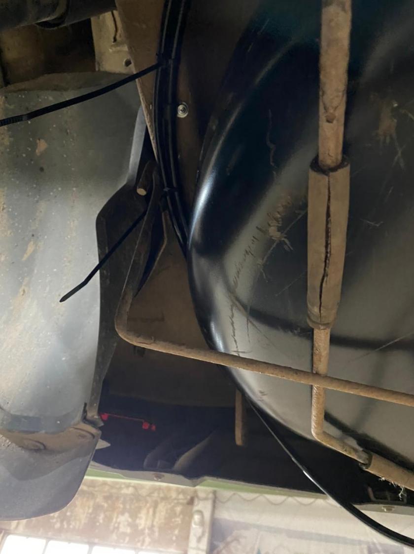 Газовый баллон тороидальный, объем 54л, вес 27±3кг для газа СНГ (сжиженный нефтяной газ), установлен в багажном отсеке ТС на место запасного колеса (запасное колесо демонтировано, ТС оснащено набором для ремонта шин). На баллон установлен мультиклапан Tomasetto.