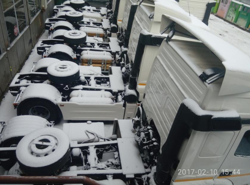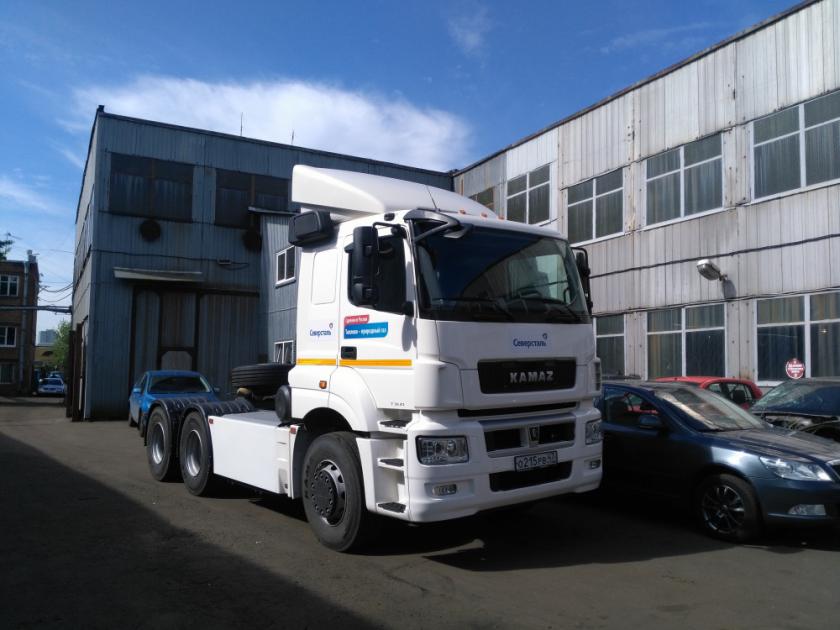 На фотографиях представлены седельный тягач KAMAZ-5490 и KAMAZ-65206 на смешанной топливной системе (дизельное топливо и сжатый природный газ).
