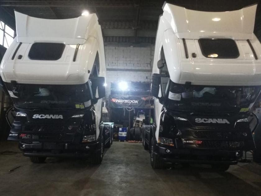 На фотографиях представлены новые тягачи SCANIA с газовыми двигателями, на которые установлены дополнительные кассеты с девятью (9) баллонами с КПГ/CNG. Запас хода на одной заправке увеличился более чем в 2 раза.