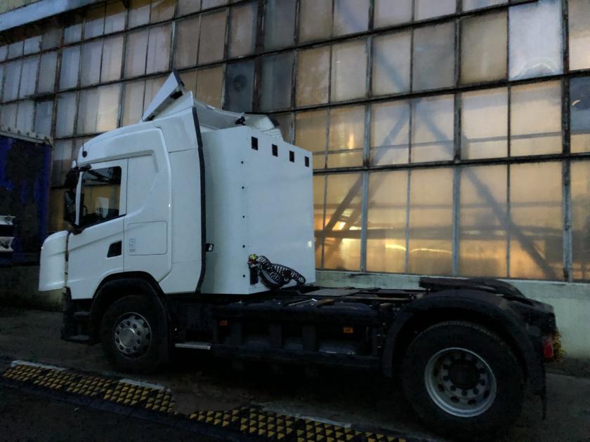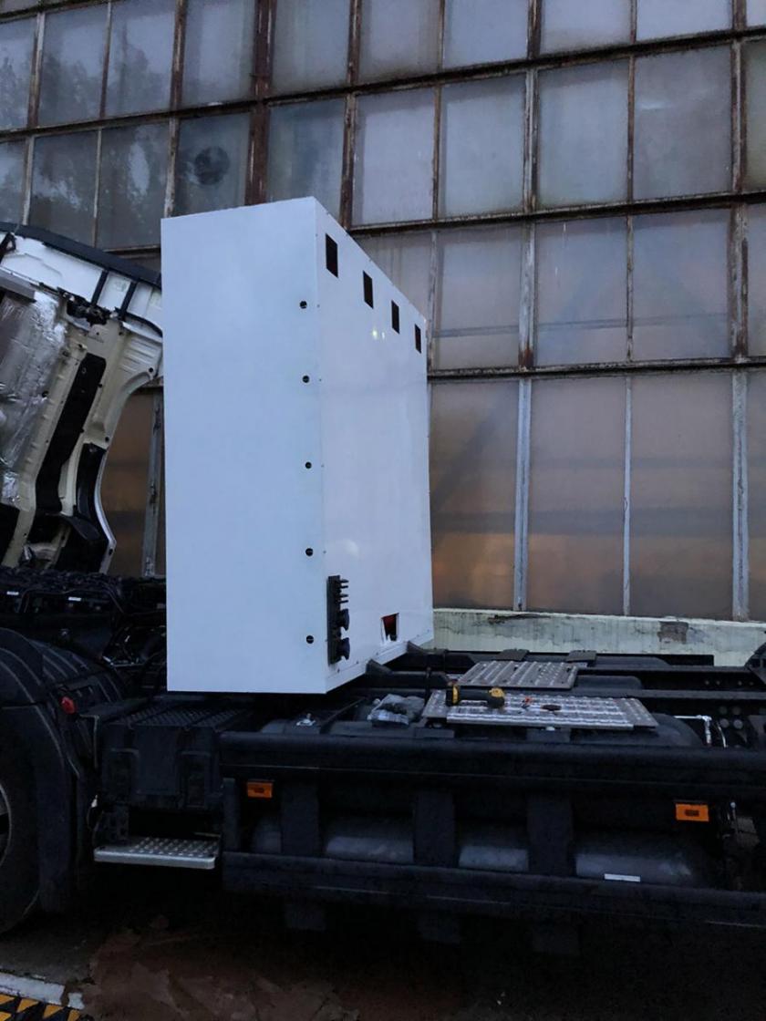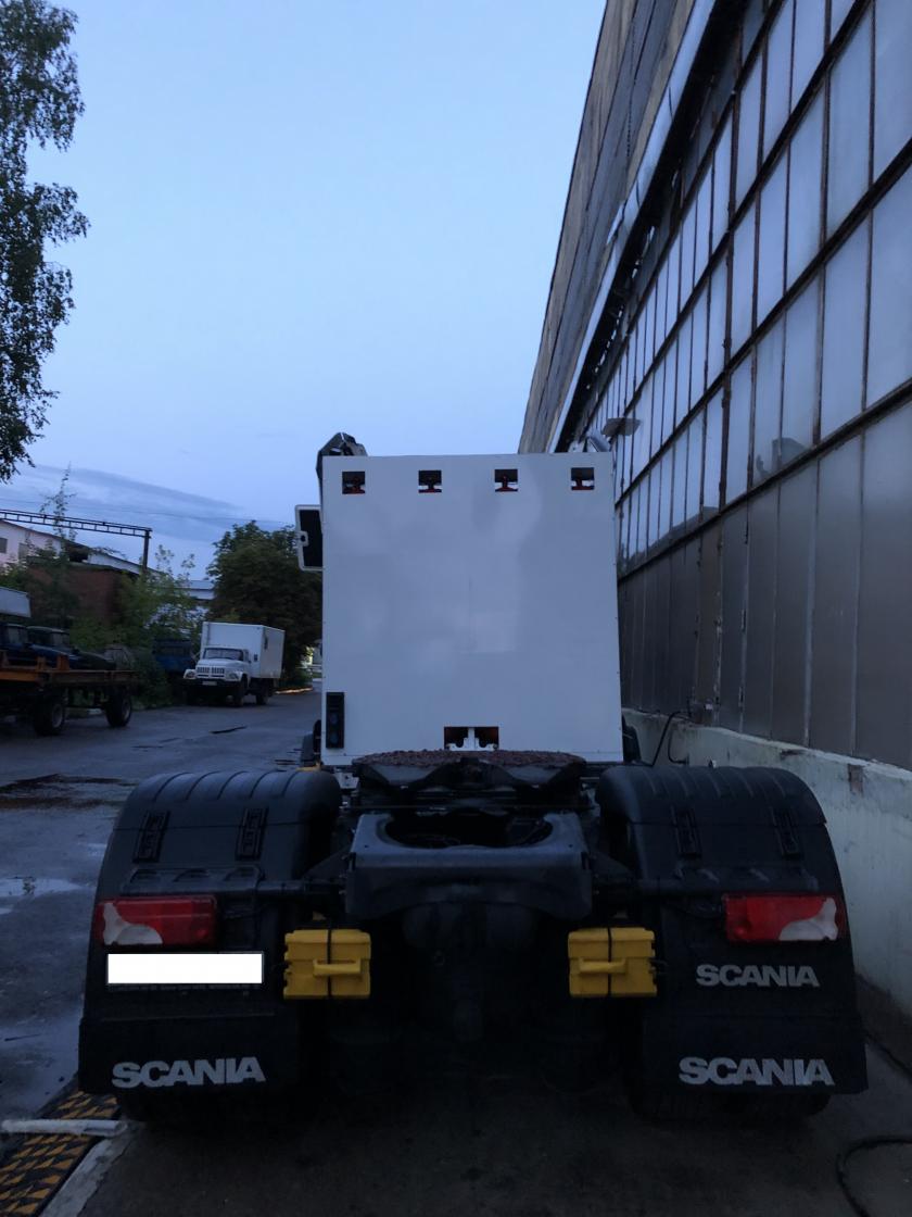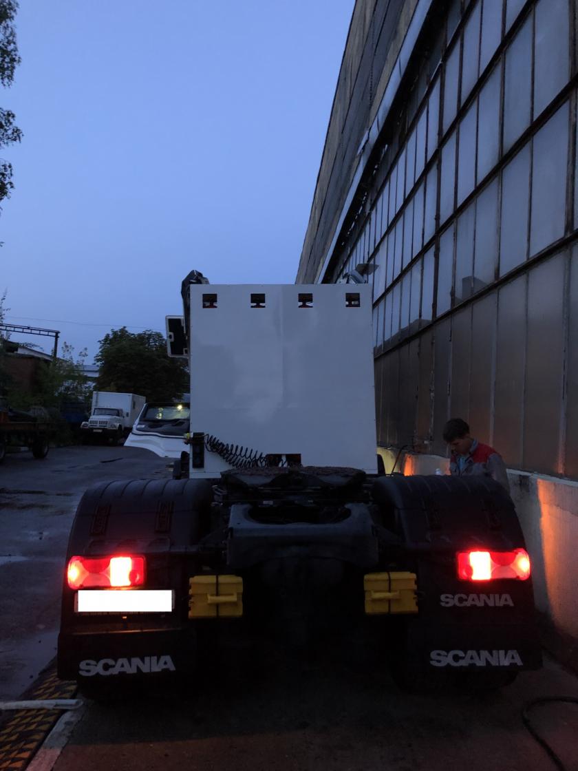 На фотографиях представлен тягач SCANIA с газовой топливной системой. На заводской автомобиль дополнительно установлена на раму за кабиной кассета для 4-х баллонов по 150 литров каждый. Баллоны подключаются к заводской топливной системе.