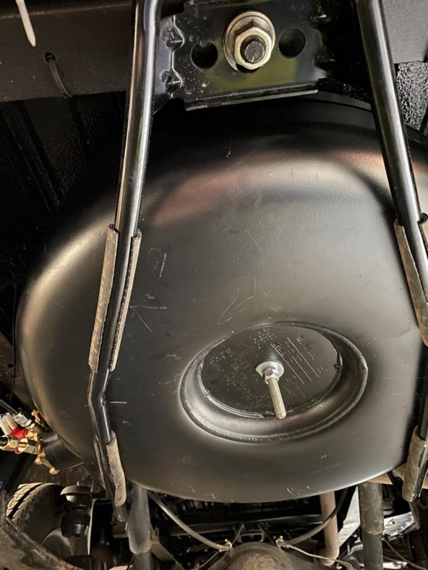 - Под кузовом на место запасного колеса смонтирован сертифицированный тороидальный газовый баллон марки АГТ-54/1, V-54 л. с аппаратурой, с использованием соответствующих сертифицированных крепежных элементов, таким образом, чтобы расстояние до заднего бампера составляло более 300 мм и более 100 мм до элементов выхлопной системы. Запасное колесо демонтировано, транспортное средство оснащено набором для ремонта шин.