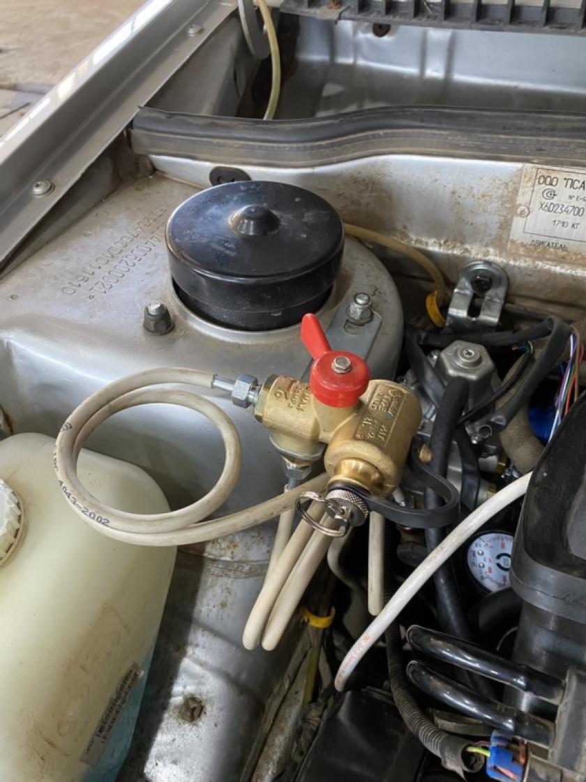 - Моторный отсек оборудован необходимыми сертифицированными элементами и системами для возможности работы двигателя на газовом топливе. Произведён монтаж газового редуктора, закреплённого на неподвижных и устойчивых элементах. В моторном отсеке с помощью резиновых шлангов к нему подведена система охлаждения от двигателя. Возле редуктора установлен электромагнитный клапан. Смонтирован и подключён контроллер. Переключатель топлива газ/бензин установлен в салоне и подключён с помощью жгута проводов. Газовые форсунки смонтированы на общей рампе возле впускного коллектора двигателя. За редуктором установлен фильтр паровой фазы и подключён с помощью резиновых шлангов. Подключение к системе питания двигателя произведено при помощи стандартных элементов: штуцеры, трубопроводы, шланги, при этом обеспечена и произведена проверка герметичности оборудования.