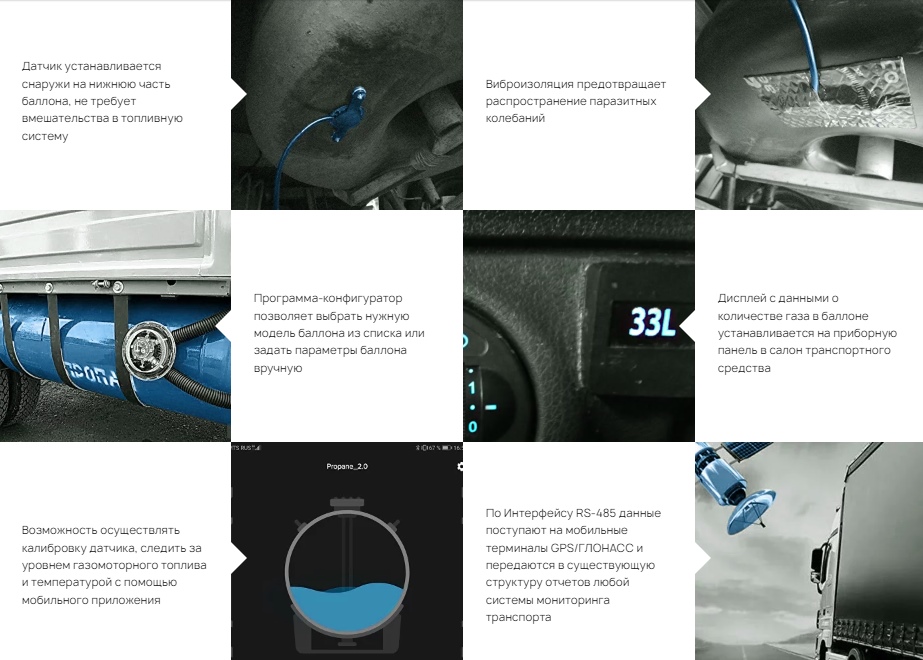 - Дисплей с данными о количестве газа в баллоне устанавливается в салон транспортного средства;